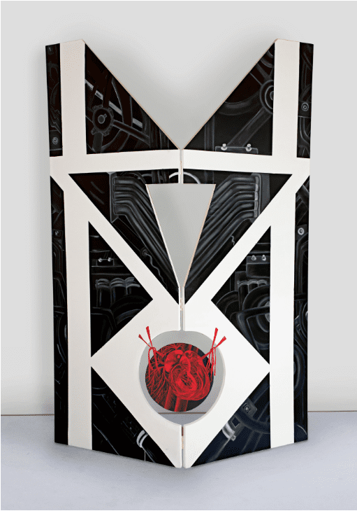 Toranzo Jaeger’s work uses pre-Columbian Mexican embroidery techniques to disrupt familiar motifs of well-known western artworks as a way of proposing an existence outside of structural systems of control. Using recurring imagery of queer love making, lush tropical greenery and brightly coloured flora, intermixed with symbols of corporate power – the car, the engine, and the spacecraft – she invites us to think critically about the potential for an alternative future beyond colonialism and hyper capitalism.