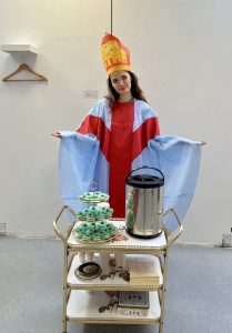 In this interactive performance Klico invites the audience to reflect on the sacredness hidden in the seams of domestic life by partaking in a shared service where the familiar becomes uncanny, biscuits take on new forms, cups of tea become vessels of blessings and the day to day rhythms of the home are elevated into a collective rite.