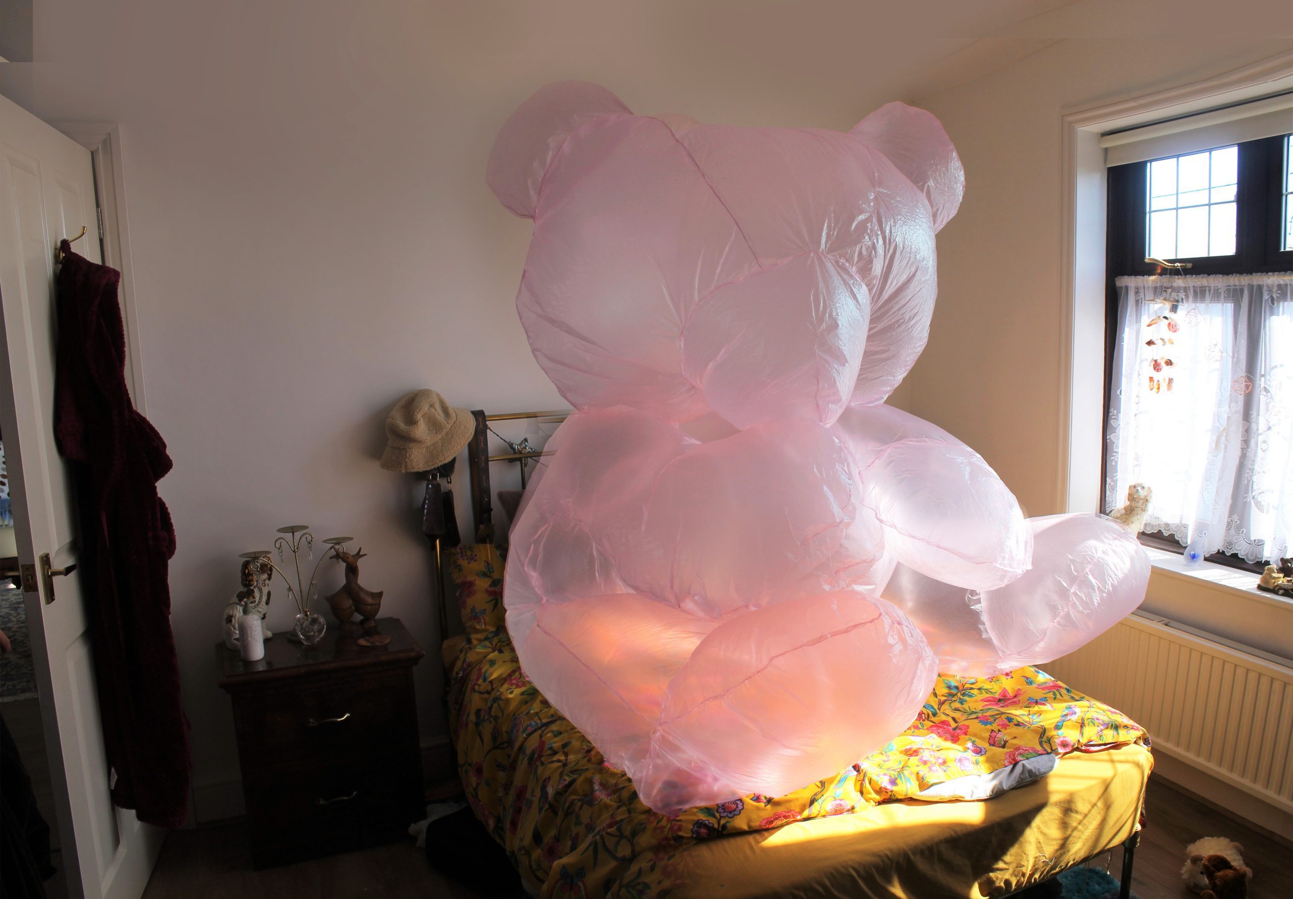 Liz Davies is a spore. She scavenges hordes of objects and materials from the woods, from skips, unwilling housemates, and the discount bins in charity shops. She combines the bucolic and the industrial, un-carefully considering the flux between object and story. Finding joy in disappointment, she celebrates uselessness over utility, and silliness over substance. Her work considers crappy makeovers, y2k, Yassification and excess. She is the opposite of Marie Kondo. She disperses objects/artworks slowly and steadily, resulting in at least 5 yearly emails regarding blocked fire exits and mouldy bread.
