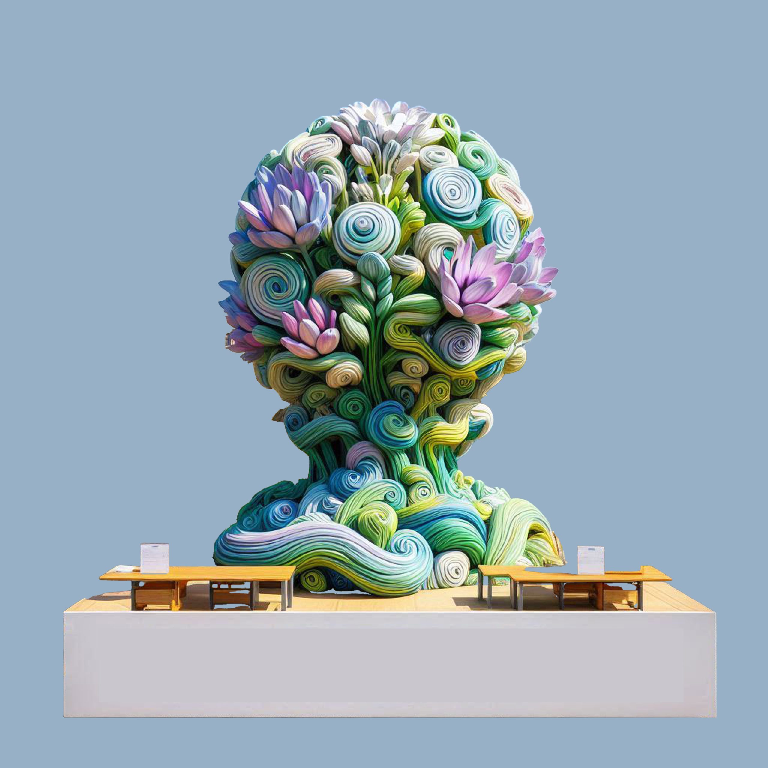 Developed from a series of conversations with Oxford-based Quantum researchers and engagements with open source AI software, the commission proposes a series of designs for public sculptures which imagine potential positive futures for quantum technologies. The five sites for the sculpture designs can be explored through a self-directed walking tour around Oxford which you can navigate from the map below or on Treister’s website.