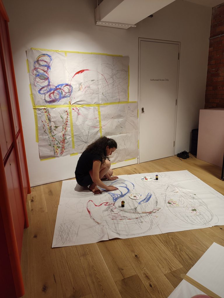 We were joined by creatives and adult learners for our hands-on evening class, ‘Drawing Across Difference’. Participants discovered how bodily movement and inner rhythms can spark creativity, drawing on themes from Movements for Staying Alive and Jane Castree’s interactive sculptures in the gallery.