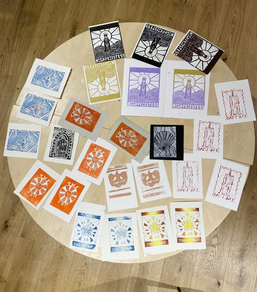 Our Young Creatives also met to explore Treister’s exhibition, and created beautiful lino-printed tarot cards in response to her artwork. This year, we were thrilled to be able to support our Young Creatives beyond the age of 18, offering opportunities to volunteer, gain. work experience within the gallery, and return as paid consultants to inform our next year of programming. Three of our Young Creatives also achieved a Gold Arts Award, a fantastic achievement, equivalent to an additional A-level!
