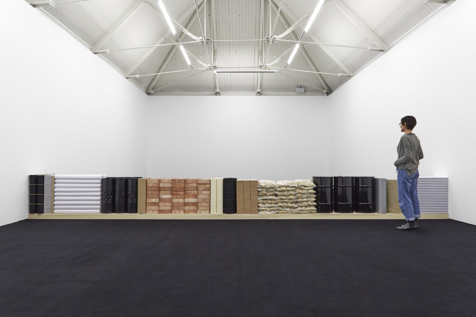 The work was created using a radical and unconventional process, employed by Marcelle for the first time within this exhibition. Having meticulously built two identical barrier-like structures, each made using equal quantities of natural and industrial materials including brick, chalk, cotton and soil, Marcelle invited six local artists and technicians to destabilise, destroy, and rebuild one of the structures. The process was undertaken over the course of a week, during which time no one other than the invited artists were permitted to enter the space, including Marcelle herself. Destabilising the expectation of creative authorship in favour of collective decision-making, the result is a playful, dramatic and totally unexpected intervention.