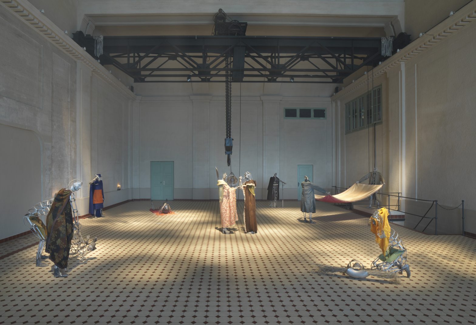 Kira Freije: Unspeak the Chorus Kira Freije, The Throat is a Threaded Melody, installation view at E-WERK Luckenwalde, 2023 Documentation by Jens Ziehe. Courtesy of the artist and The Approach, London