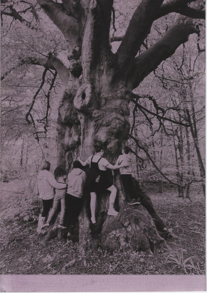 LT: When you work with natural materials, it impacts all the senses: you smell the green willow, you feel the tension of the branches, and you see the beauty of the different materials. We kept that wonder at the core of the project. In the first session, one of the children, who is only seven or eight, got so excited about the trees, and actually knew quite a lot already! I was like ‘wow this is amazing’. Nigel Fisher, the conservator, took us for a tour of the Woods and explained how you can tell the age of a tree by its rings. The group were fascinated by scientific details, such as tracking mice or calculating how many caterpillars a Blue Tit needs to feed its chicks (roughly 60–70 per chick per day). The children have talked about that visit, and the tree hugging one, ever since.