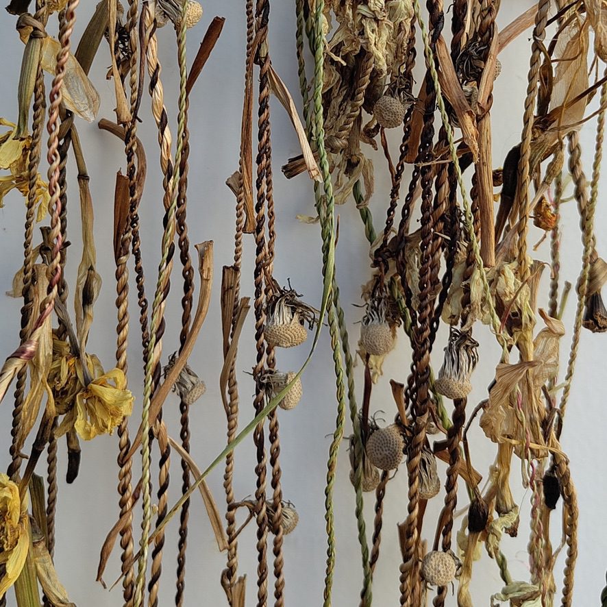 AE: We used flowers, leaves, vegetables, grasses – anything with enough fibre for cordage (the ancient art of making rope by hand). If we need something, we’ll try and find it, forage for it, or borrow it from friends and family.