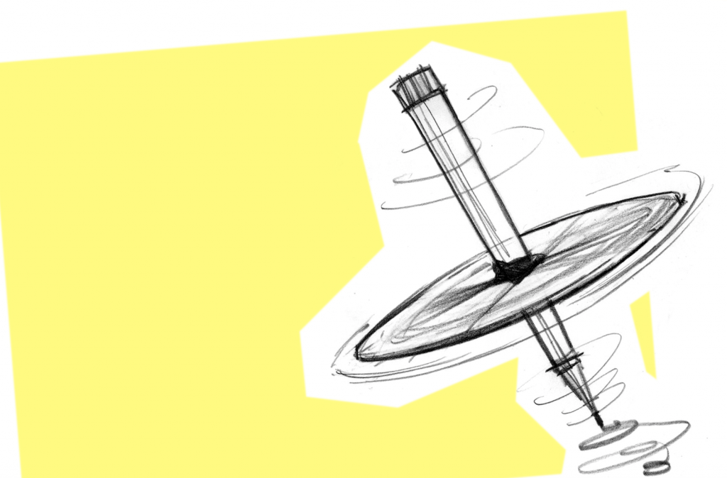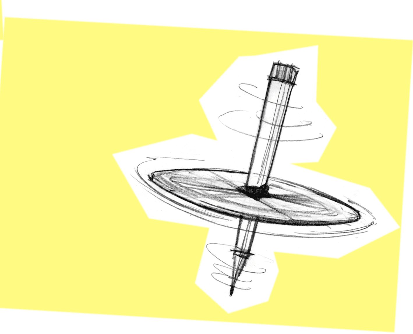 2. Gently but quickly pull one hand back towards you and drop the spinner onto the paper letting it dance an inky line all over the paper*.