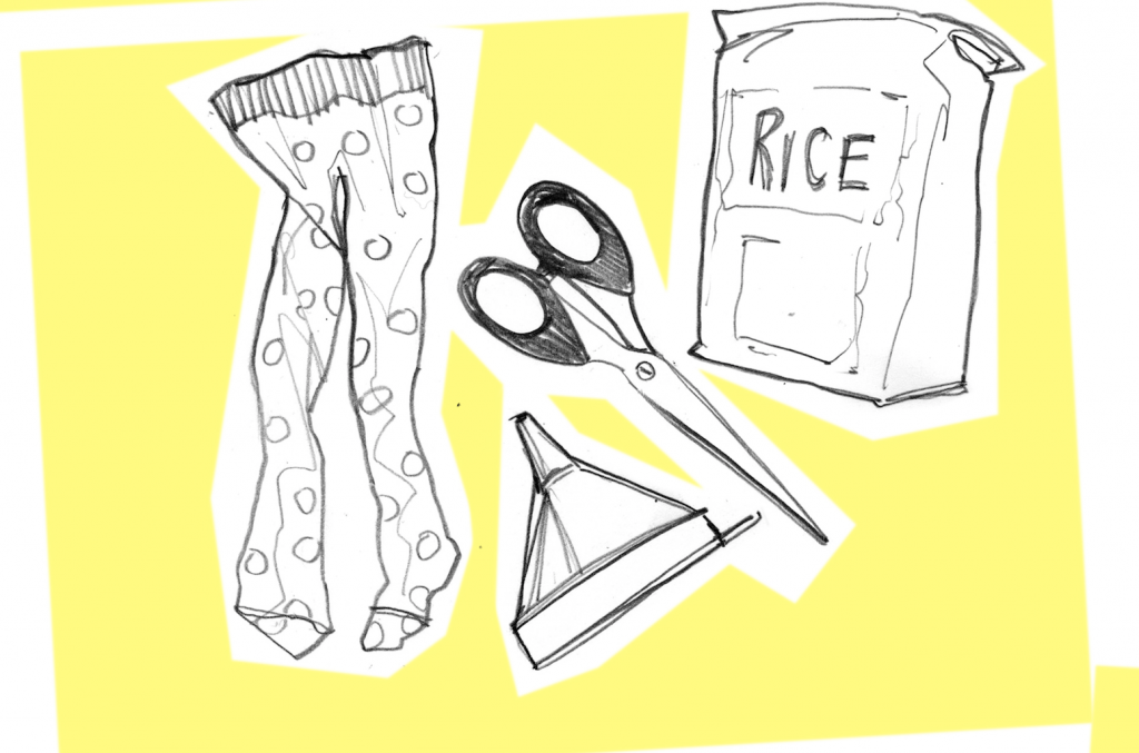 - Use a funnel to pour rice into one of your long socks until it’s 1/3 full.