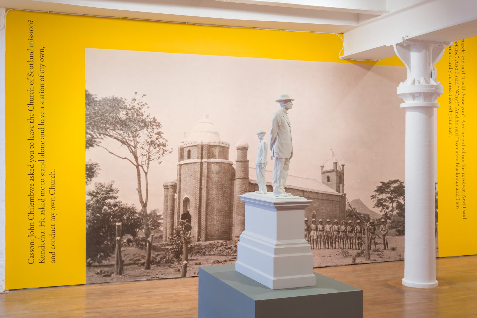 Samson Kambalu, who has a major solo exhibition at Modern Art Oxford (22 May – 5 September 2021) presents the powerful new sculpture, Antelope for the commission. Antelope restages a 1914 photograph of the Baptist preacher and pan-Africanist John Chilembwe and European missionary John Chorley. Currently on display as a maquette at Modern Art Oxford, the sculpture for Trafalgar Square features Chilembwe with his hat on, defying the colonial rule that forbade Africans from wearing hats in front of white people. Significantly, Chilembwe is larger than life on the plinth while Chorley is life-size, an elevation of Chilembwe and his story which reveals the hidden narratives of underrepresented peoples in the history of the British Empire in Africa and beyond.