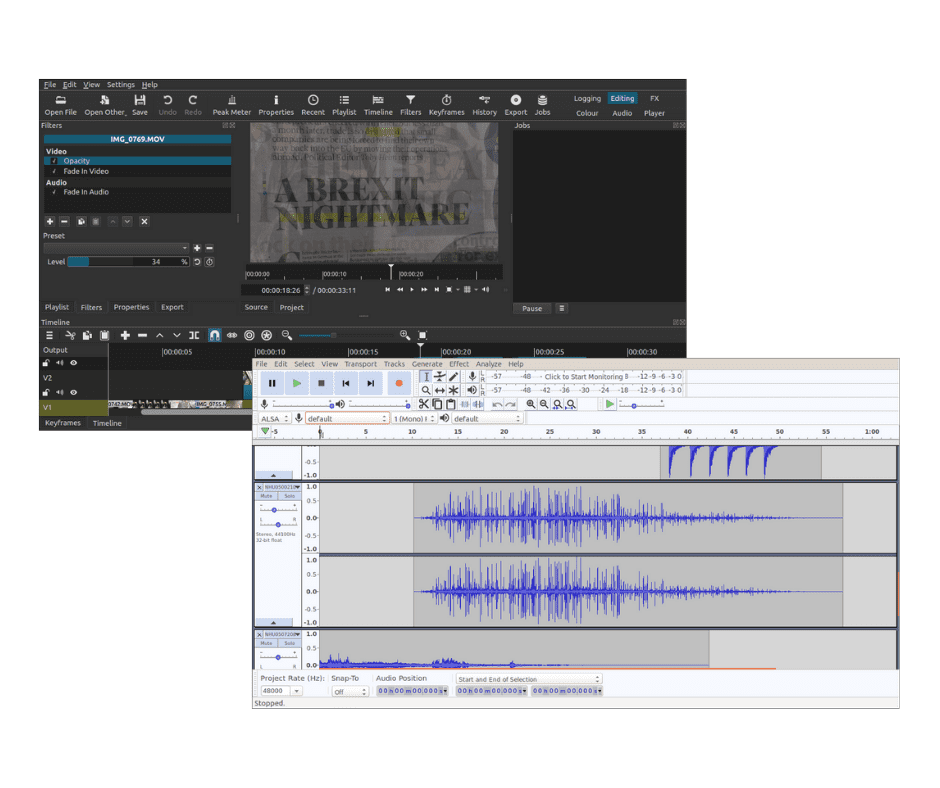 I created my film with the intent of encapsulating the overwhelming effect the news had on me. Employing what I had learn from the workshop with the sound artist Poppy Tibbetts, I made an accompanying soundtrack, adding effects to each snippet of news.