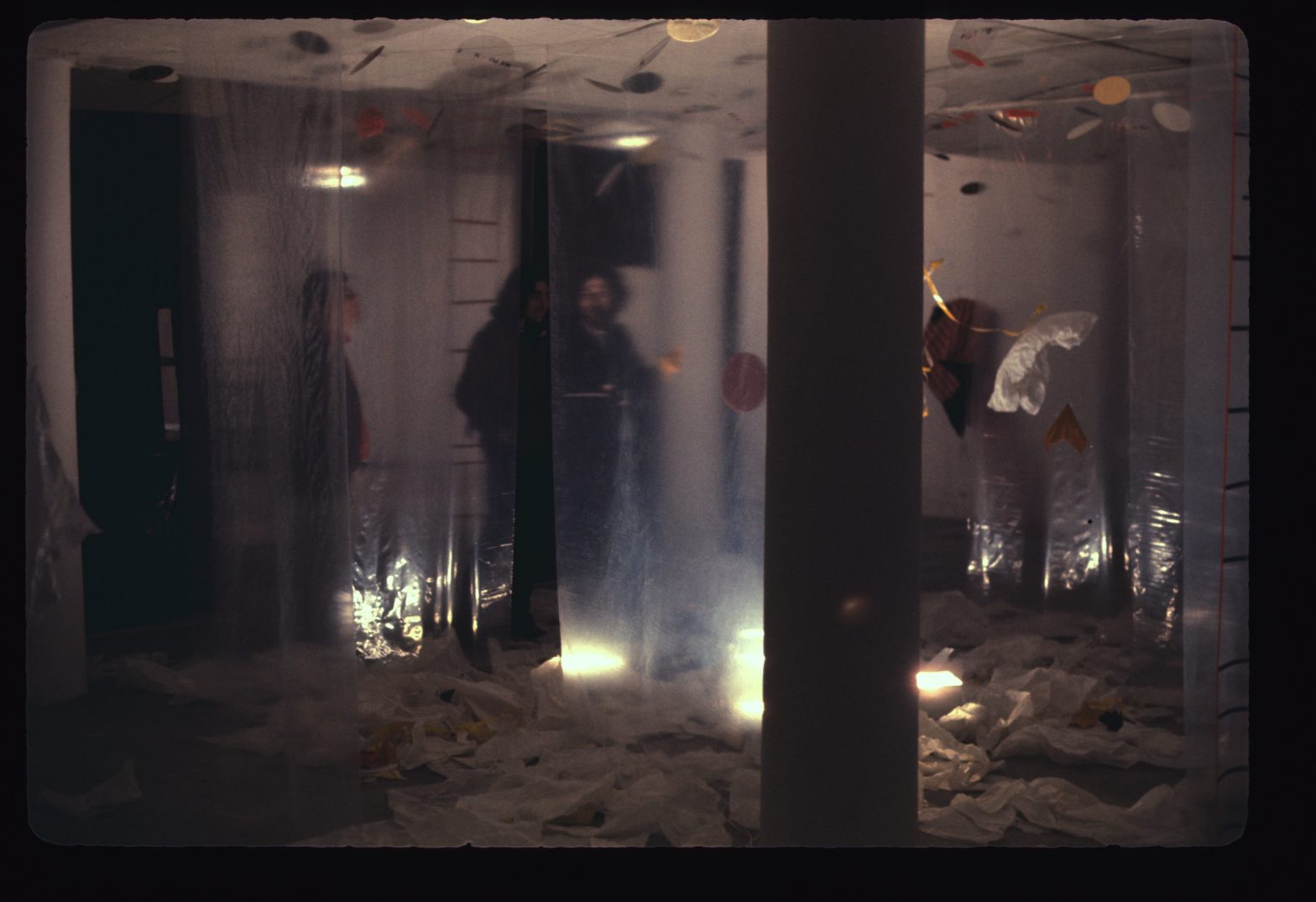 After a chaotic organisation period that required the intervention of Sir John Pope-Hennessy at the Arts Council, an exhibition spanning all three floors of the warehouse building opened for a Saturday evening preview on 13 February 1971. The works included touchable installations, large pneumatic structures, and wearable objects such as capes and masks designed to heighten awareness of the human body.