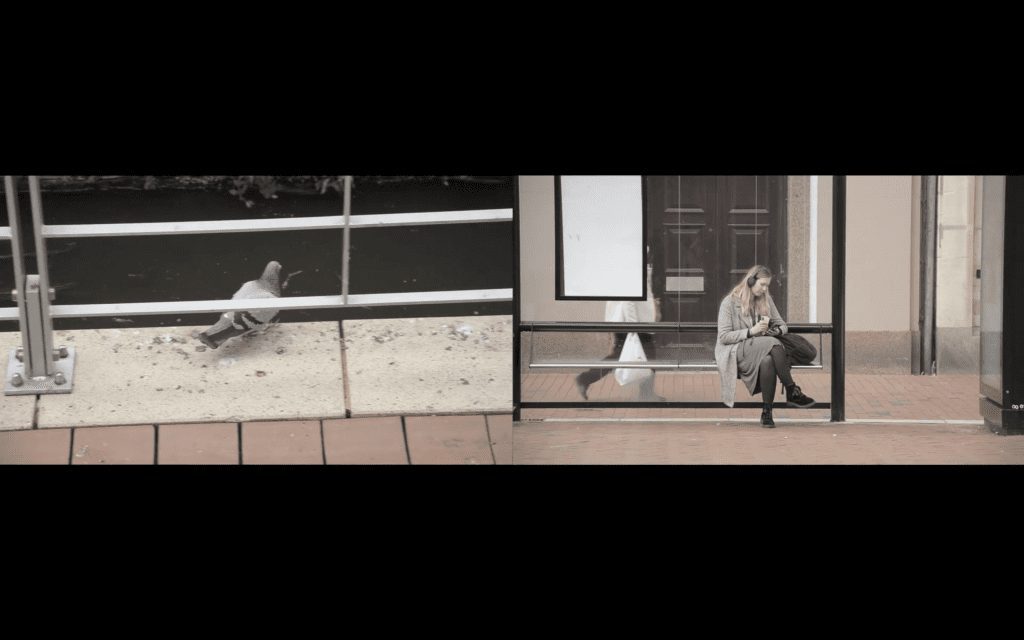Sometimes the two screens complement each other, sometimes they contradict each other, showing points of contrast and moments of harmony across distinct urban spaces. Tuzel’s practice observes and questions how human experiences in urban spaces can be at once so similar and so unique.